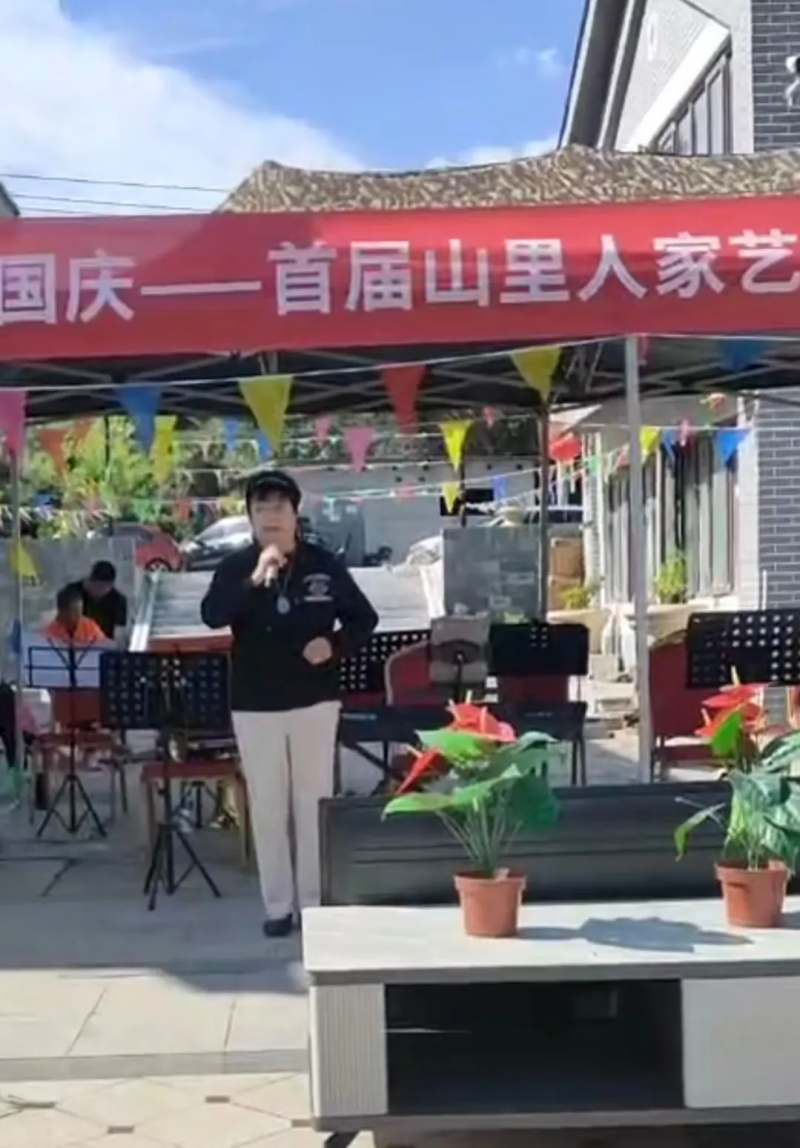 除了精彩的书画展示与创作,现场还安排了乐队歌唱表演。乐队以“歌颂祖国、赞美家乡”为主题,演唱了《我和我的祖国》《歌唱祖国》《家乡的云》等经典歌曲。悠扬的旋律、深情的演唱感染了在场每一位观众,大家纷纷跟唱,歌声在庭院中回荡,将国庆的喜庆氛围推向顶点。艺术家曾春玲献歌一曲《故乡是北京》,赢得现场阵阵喝彩。,游客王先生表示:“这个国庆来山里人家太值了,既能看名家书画,又能听经典歌曲,还能感受乡村的宁静,这种文化与自然结合的体验特别棒。”