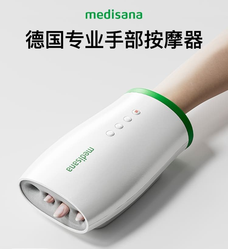 不仅如此,medisana(马德保康)手部按摩仪还支持三挡强度、三挡模式,搭配大面积恒温热敷促循环,左右手通用,稳居天猫类目TOP1,获万人认证。