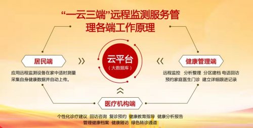 以百家医道系统平台为基础,建立居民端、家庭医生端、健康管理员端“一云三端”的远程监测管理模式,居民在家中通过穿戴式检验检测设备,足不出户既能享受高血压、高血糖、胎心等健康管理服务。